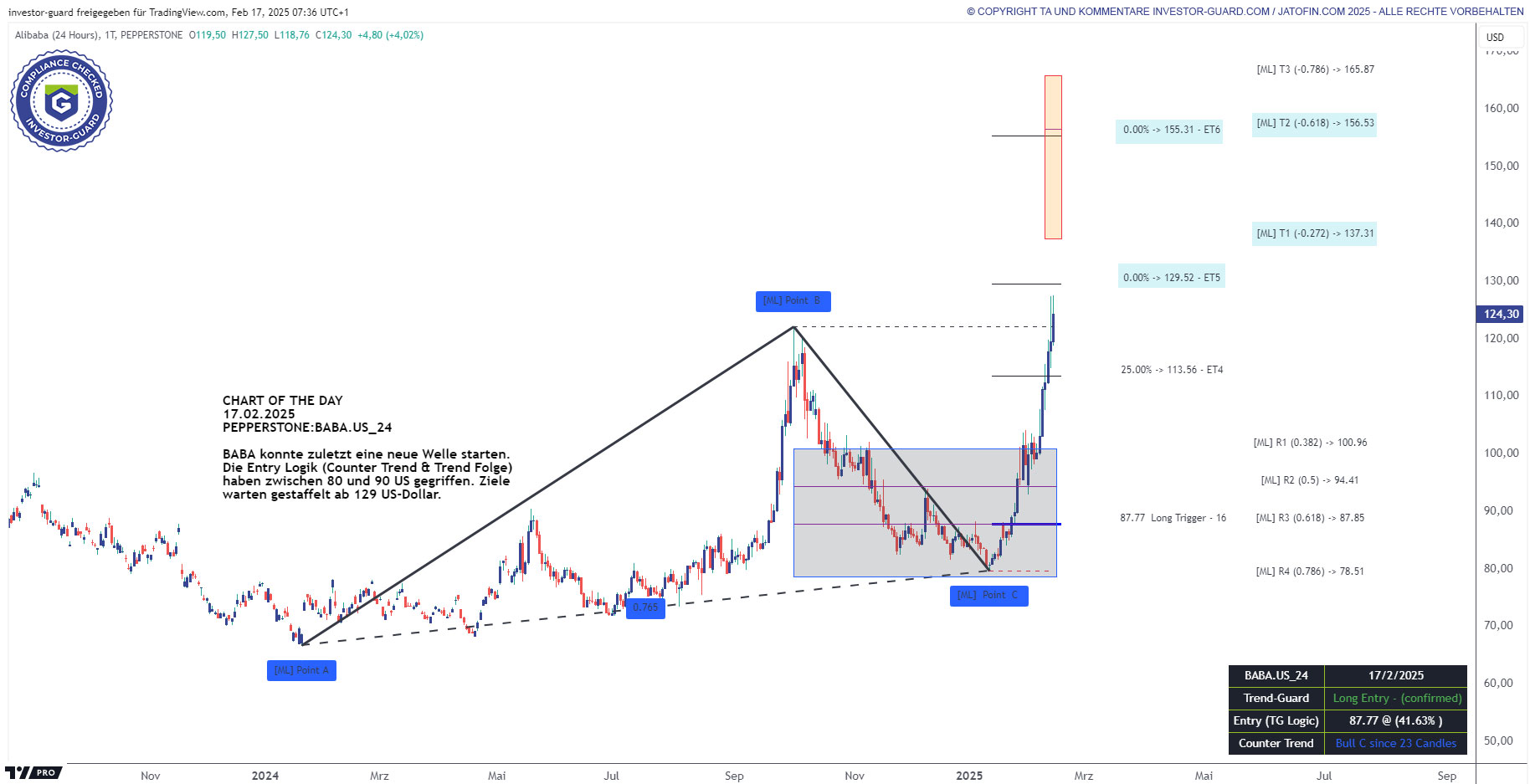 BABA zeigt starken Schub. Alle Trend-Guard Module sind long.