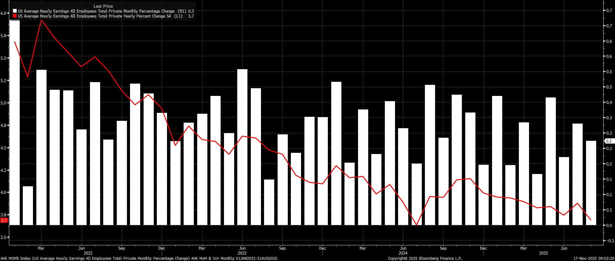 Sticking with the establishment survey, the September report is likely to again point to earnings pressures remaining relatively contained, as they have done for some time now. Average hourly earnings are set to have risen by 0.3% MoM, unchanged from the pace seen a month prior, which would in turn see the annual rate hold steady at 3.7% YoY.